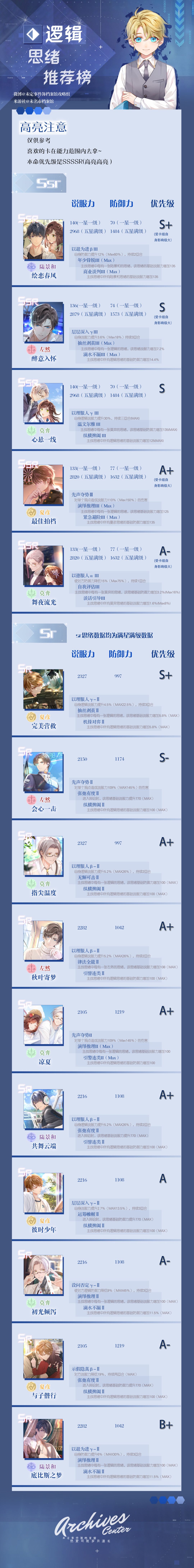 全新逻辑|共情|直觉思绪推荐榜(已增加新SSR