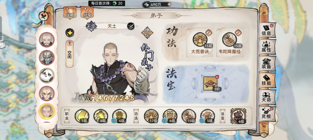 我相信其实普通玩家的数量还是占大多数的,所以我在这里着重讲解仙缘弟子不够的时候石僧怎么进行搭配,这里暂时以有龙人和没龙人进行区分。
