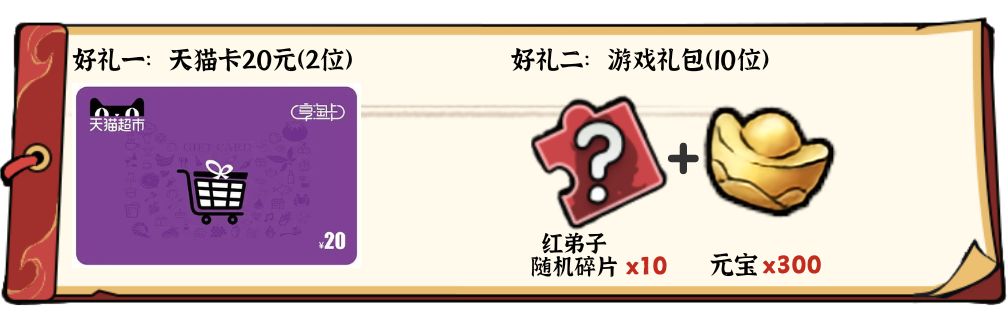 1、随机抽取2位掌门获得天猫卡20元*1
