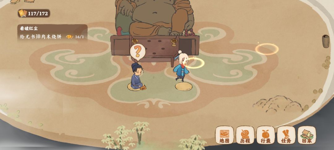 在寺庙大殿,我之前没有直接去看,可以先直接去看看,没有的话要靠随机做支线了,不过个人猜测是右禅室石砖任务相关