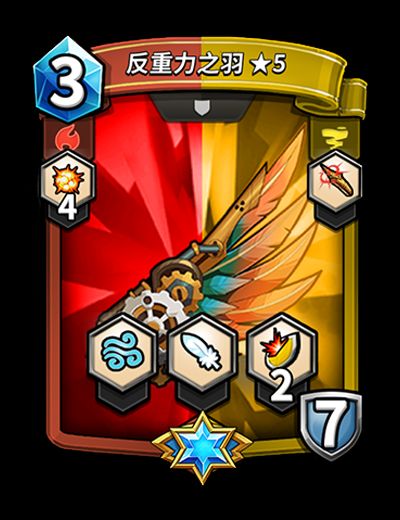 「反重力之羽」为命运(黄)与战争(红)双阵营精英道具卡。