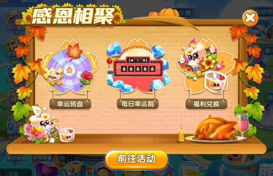 幸运转盘、每日幸运鹅、福利兑换