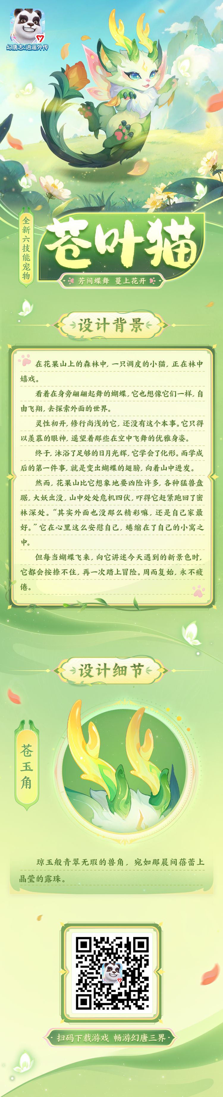 芳间蝶舞,蔓上花开,全新六技能55级宠物“苍叶猫”即将上线!