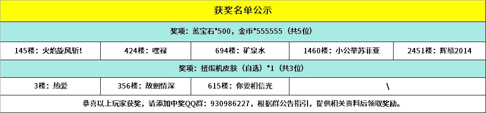 恭喜以下幸运的小骑士获得活动奖励,请中奖的小骑士添加获奖群:930986227,请加获奖群后,登记相关获奖信息,超过15个自然日未进群未登记视为放弃奖励~