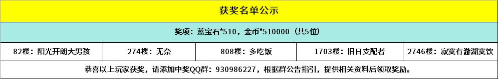 -------------------------------------------------------------(中奖名单)--------------------------------------------------------