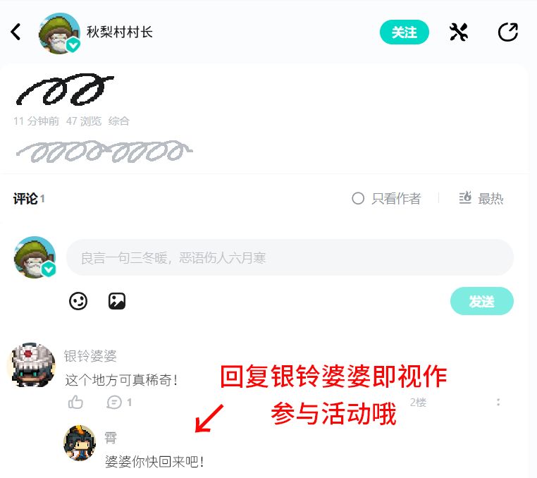 需要小骑士们帮村长回复一下银铃婆婆,让她来找村长呀!