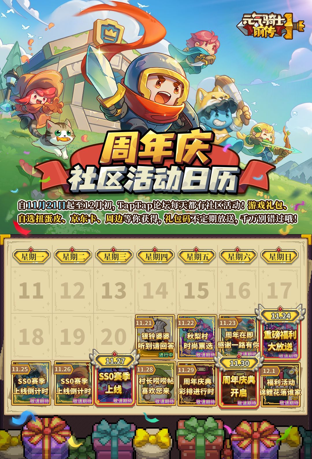 对啦,新赛季开启在即,从今天开始,社区每天都会有活动和奖励发放哦!详情请看下方的活动日历——