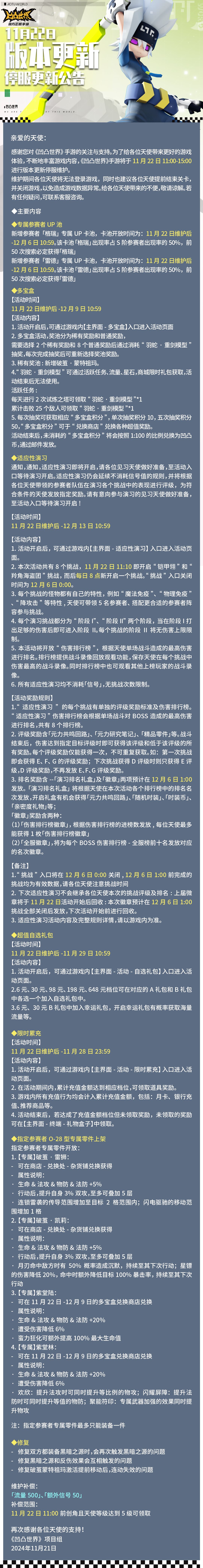 11月22日版本更新停服维护公告