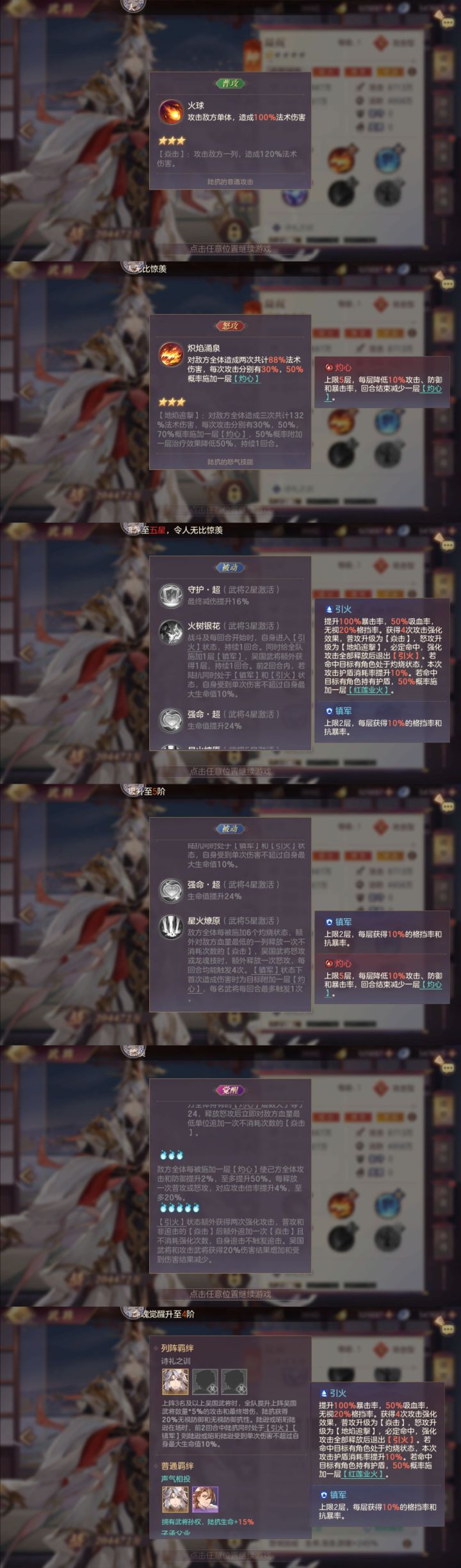 陆抗:给陆逊锁血,对敌方释放红莲业火(百分比烧血量),降低敌方百分之五十的攻击防御。