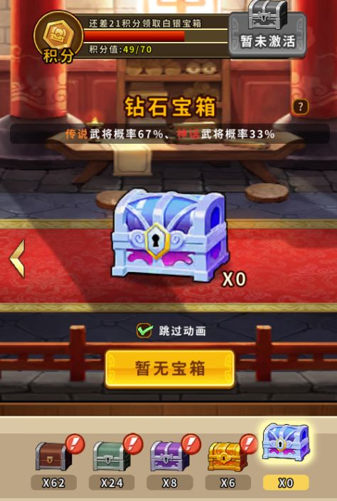 达成良好的活跃度,即可获得宝箱/武将招募令等奖励