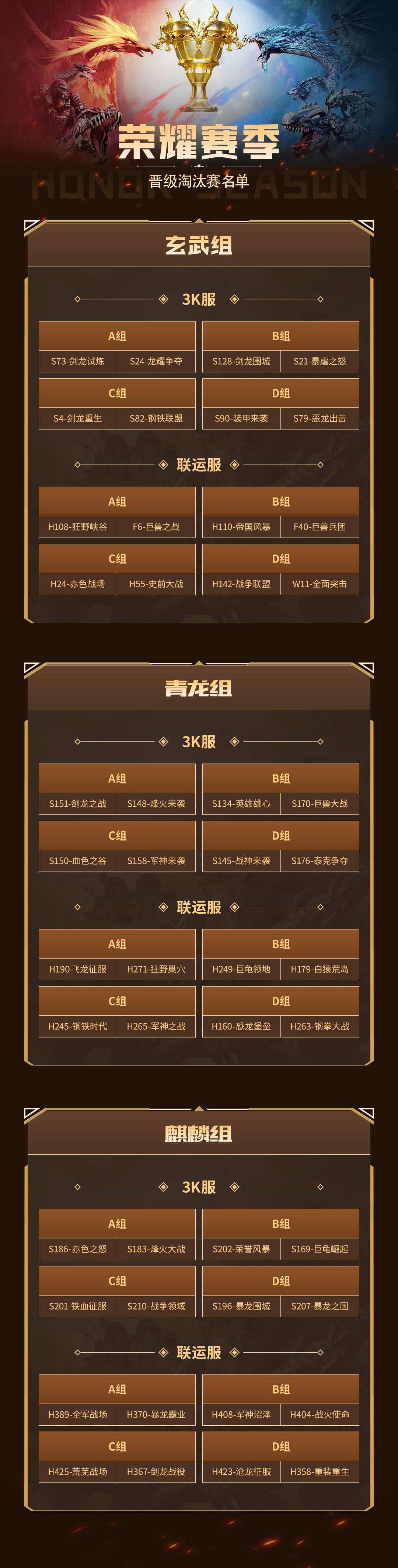 2024年巨兽战场荣耀赛季【淘汰赛】晋级名单出炉!