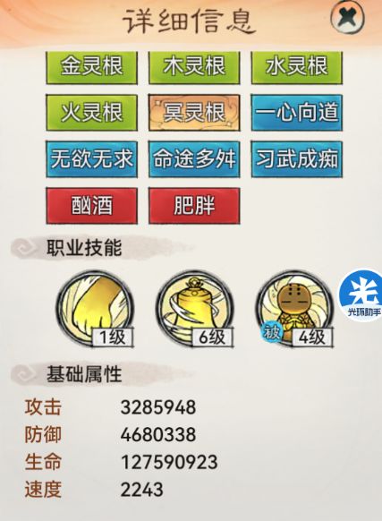 配置参考:明光三件套,道兵携带五行扇为龙人增伤。法宝携带速度炼化的二阶养魂木
