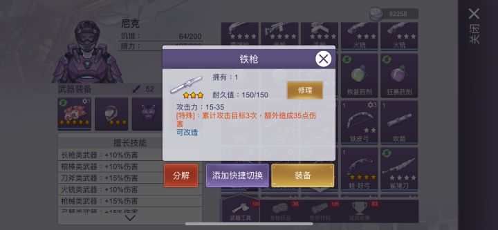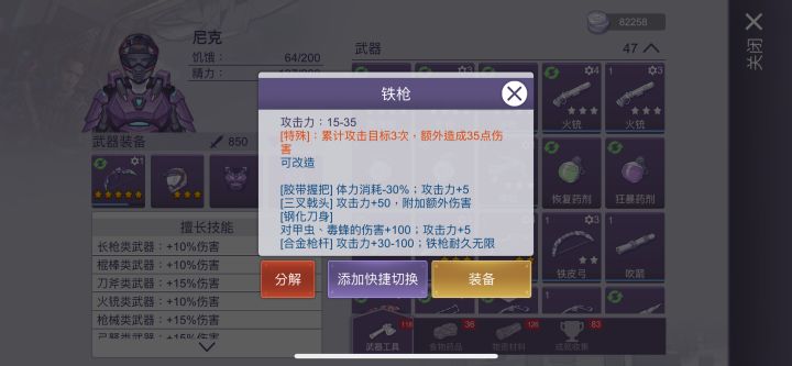 *虽然制造铁枪的材料里有铁刀,但将铁枪分解之后并不会返还铁刀,而是等量的生铁
