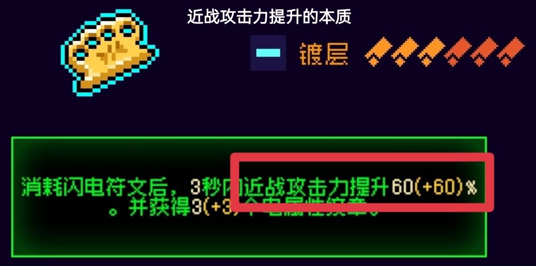 120%近战攻击力乘区提升,比普通拳套还要高20%,而且效果几乎常驻,毕竟每3秒生成一个电符文,效果又持续3秒,闭环了。