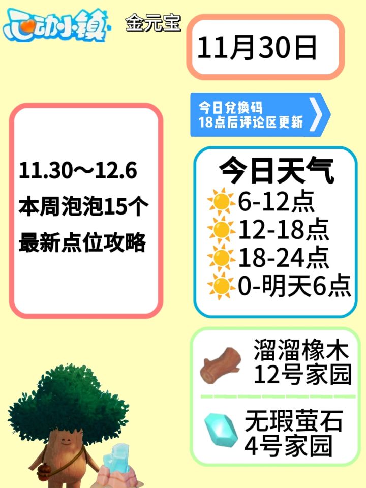 11月30日溜溜木萤石兑换码天气泡泡点位