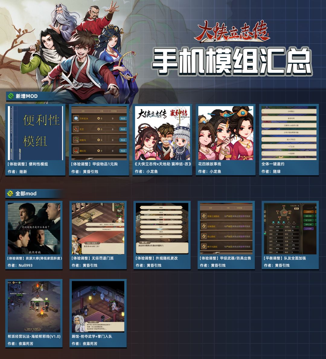 1. 新立绘适用于游戏本体、DLC《一统江湖》和《倩影萍踪》,主要对主角、伙伴及重要角色等200+角色立绘进行替换