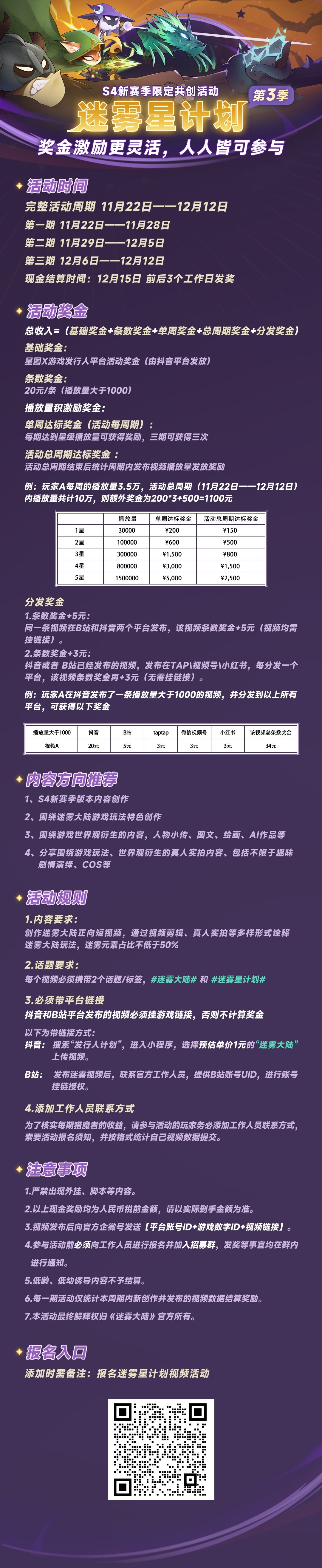 【S4新赛季限定共创活动】迷雾星计划第三季!