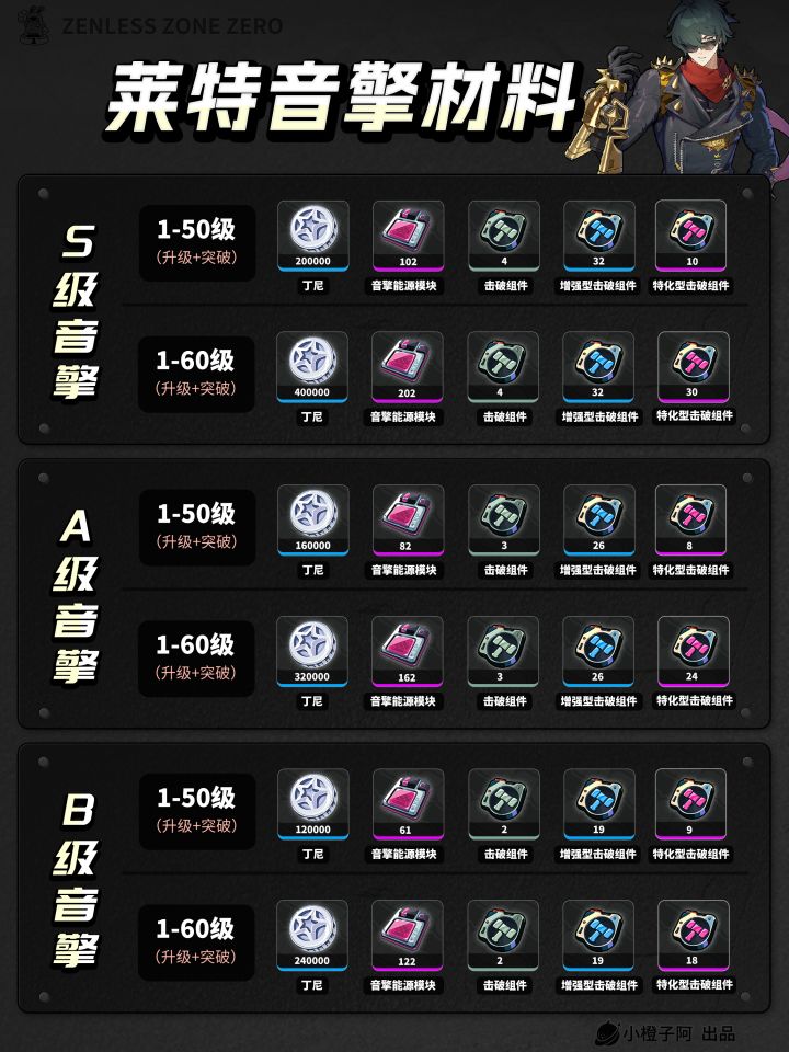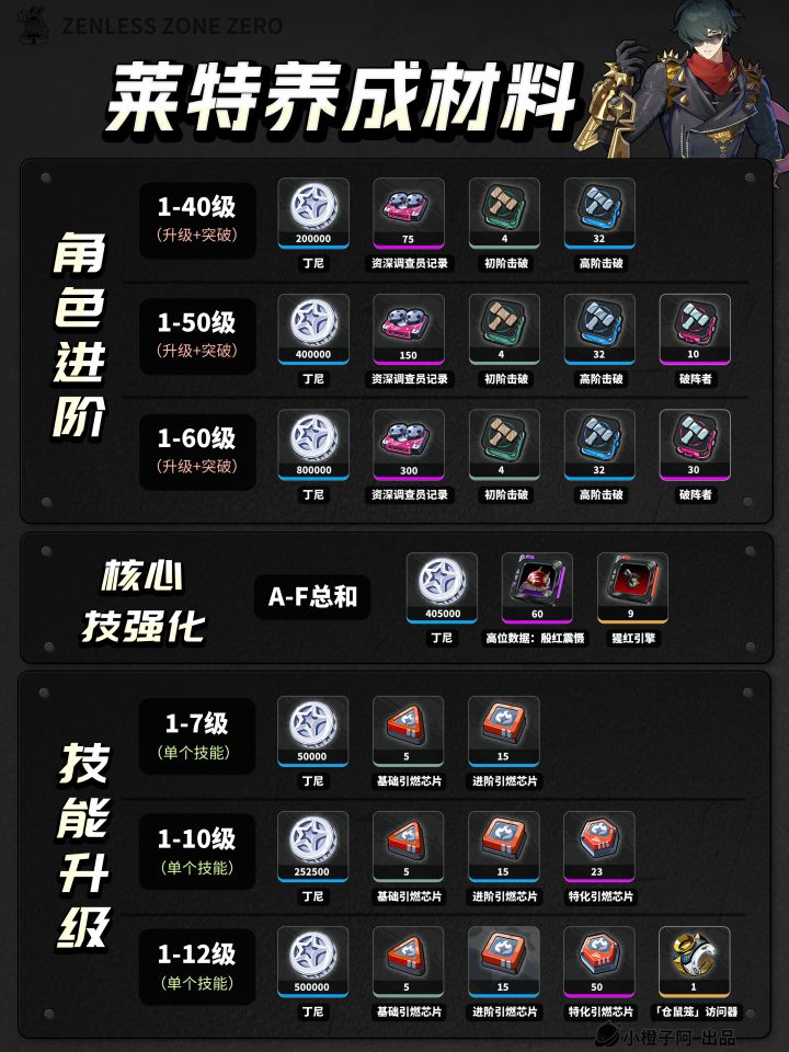 莱特 角色+音擎丨养成材料统计