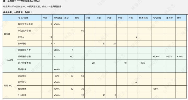 红尘阁选择属性,持续30分钟,突破时在用,谨慎选择,一般准备天道筑基,或者高品金丹再用