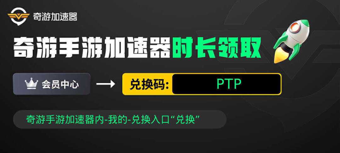 最后可以在奇游手游加速器内找到我的-兑换中心输入兑换码【PTP】 即可领取免费加速时长哦!