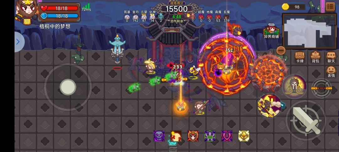 进去直接跑到右上角,连兵带柱子一起打,一般都是2个技能就能打破柱子(掉传说石板),然后对话,选择无妨(有概率先天道体),接着清第一波小怪,清完回到初始点,去右下角,有隐藏