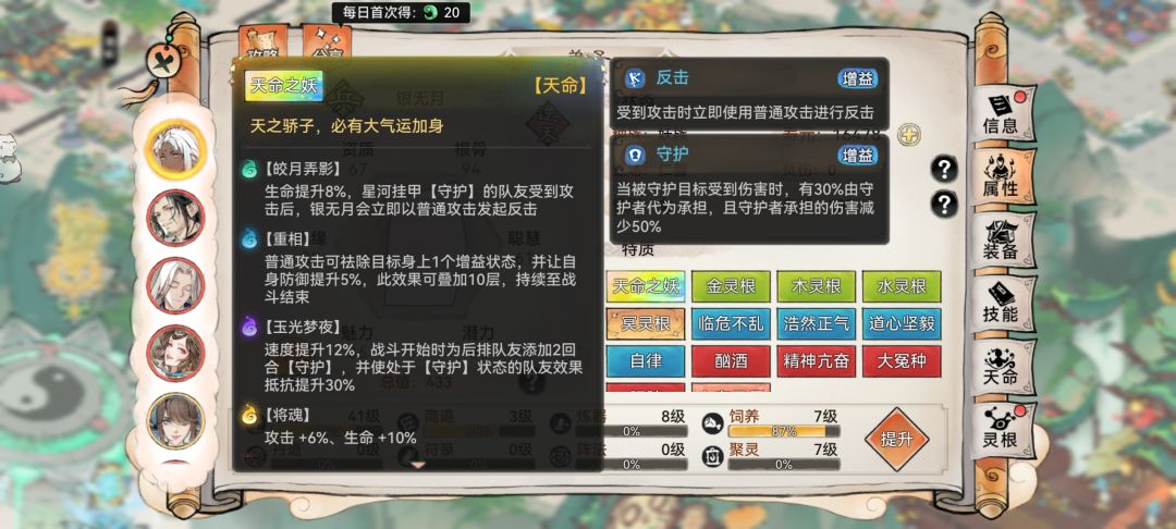 银无月的主要天命是“重相“,普通攻击可祛除目标身上一个增益buff,且叠层提高防御力5%;其次则是”玉光梦夜“的速度提升12%。这两个主要天命影响银无月的养成。
