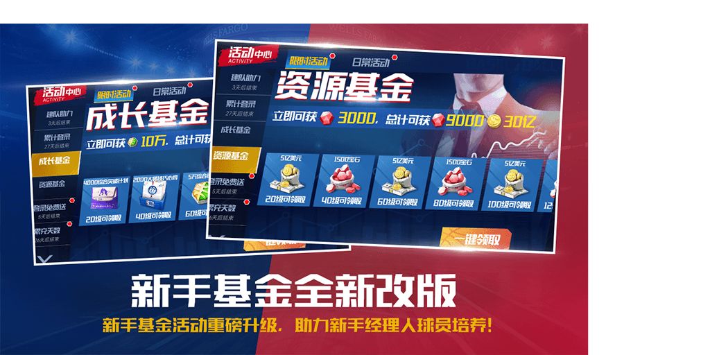 我们为处在新手期的经理人新增了资源基金,并将原有的成长基金升级。这两种基金含有包括大师技巧心得、综合突破计划、综合训练点在内的一系列奖励,助力新手经理人更快地成长!