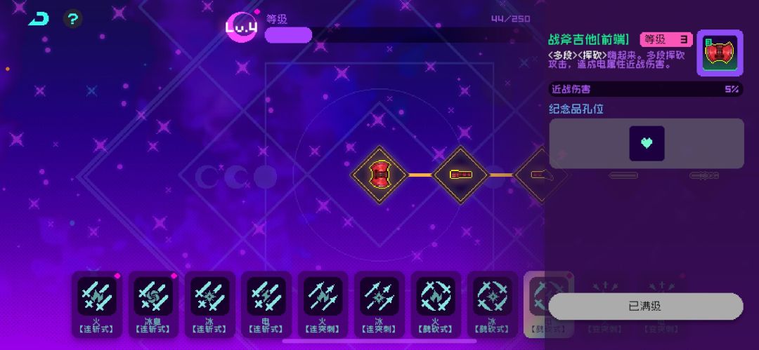 等我们肝到4级之后,就可以把战斧吉他[前端]升满级,升到满级可以看到解锁了一个纪念品孔位: