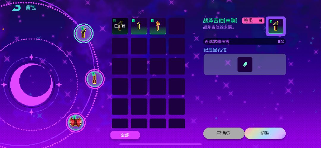 我们再把剩下的战斧吉他[核心]和战斧吉他[末端]都升满级,然后装在身上: