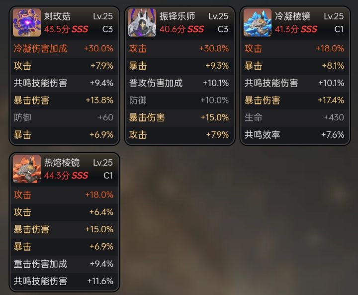目前只差4c声骸、角色突破的植物材料、角色高阶技能材料,这三个可能要等新地图和新BOSS。