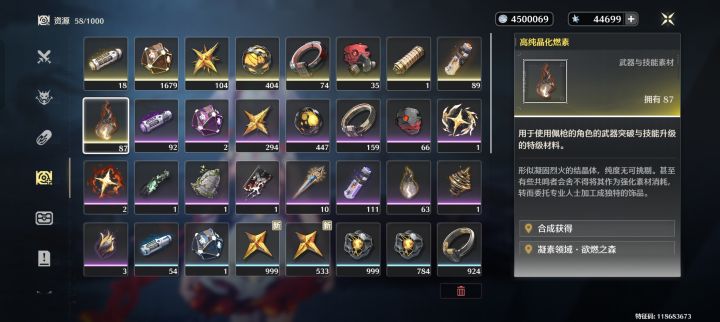 珂莱塔能凑的材料都凑齐了,450万贝币、87+61+36+31技能材料、120角色经验、武器经验大概率是溢出的就没管、声骸也就绪。