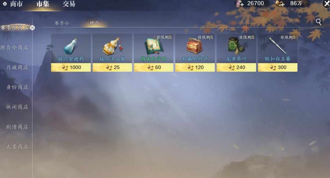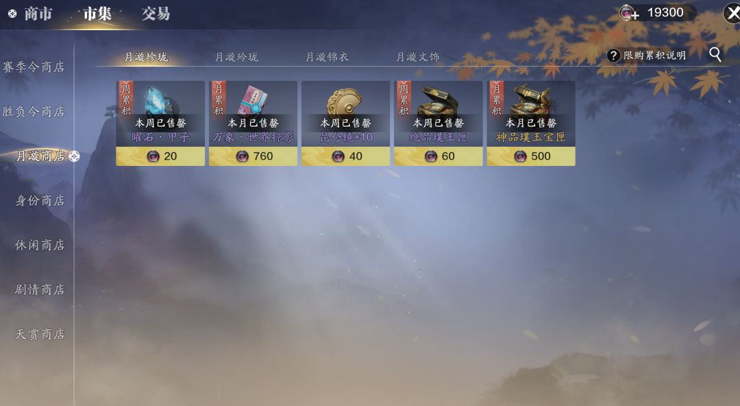 全新货币种类介绍:在全新的赛季服版本中,新增了月灵石、金叶子、碎金、月璇珠、赛季令、闲情令、剧情点等货币,那么下面就带大家详细了解一下新增的这些新货币用途以及当前各种获取方式。