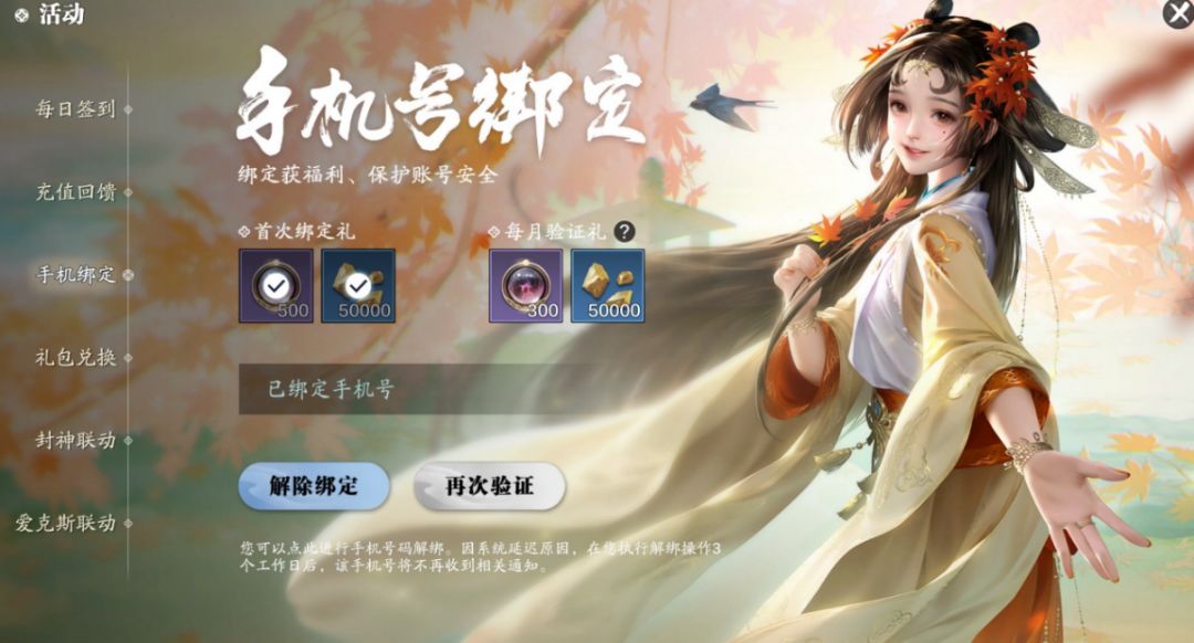 获取方式三:手机号绑定奖励