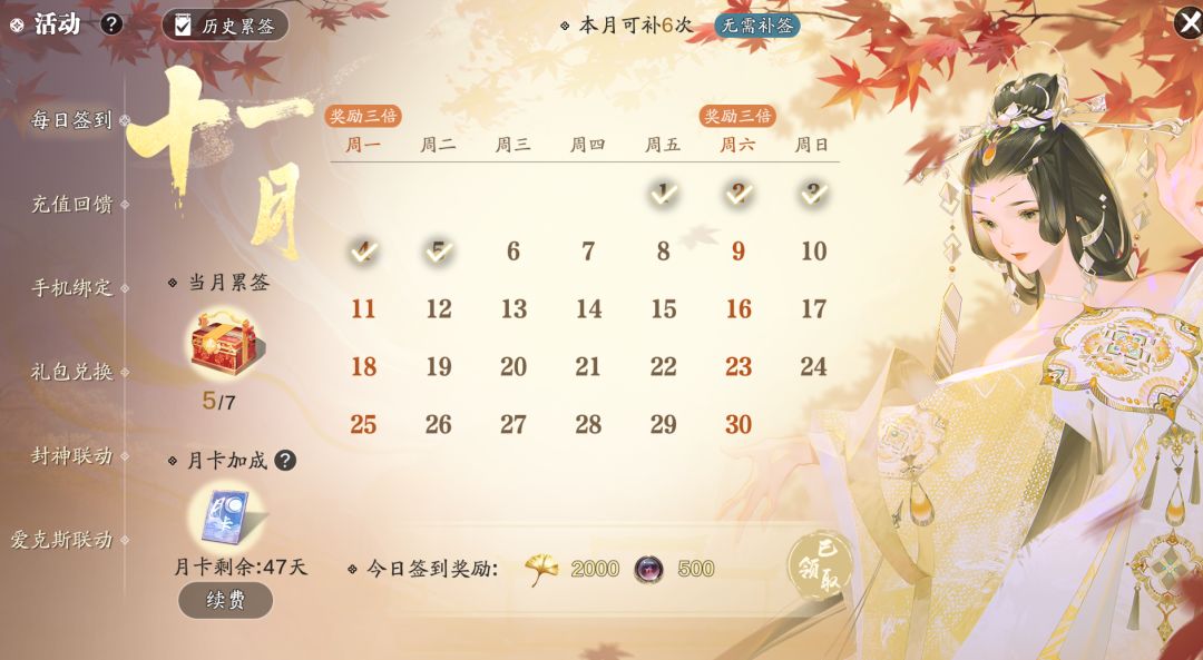 获取方式四:累计签到50日、100日、200日、1314日、1666日、1999日赠礼