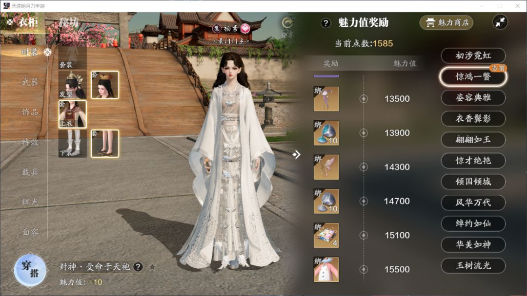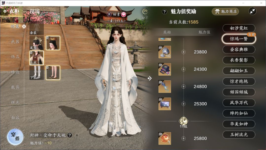另外,魅力值开放了更高等级,过去高级天衣令兑换的部分外观已转移至魅力值奖励下。