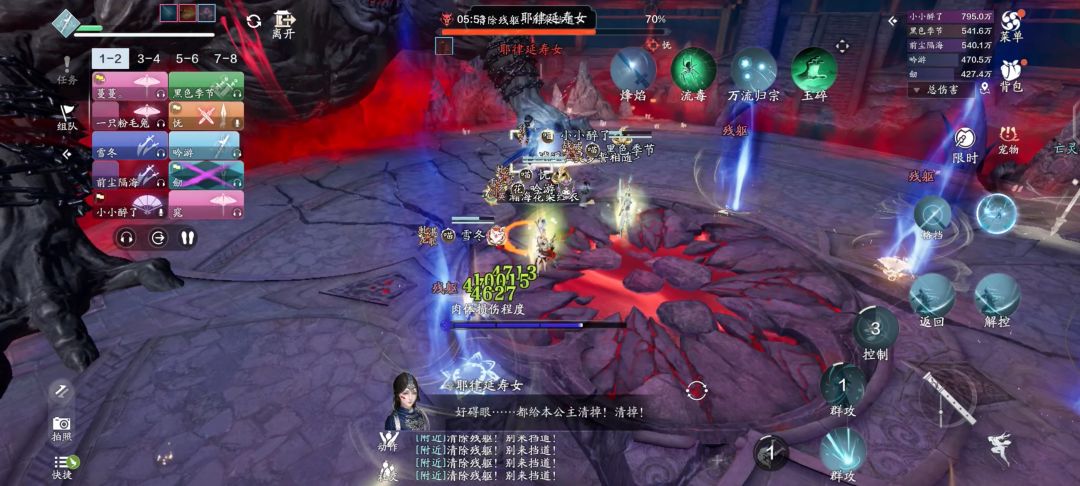 在此期间,延寿女不断释放全屏技能,这个直接硬抗,全力输出。