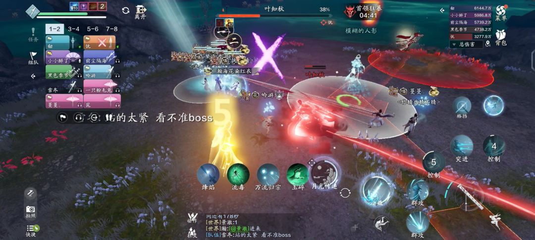 第一阶段比较简单,开局需要有4位队友站在红线上,阻断魔影给叶知秋叠加魔痕层数,所有人全力输出叶知秋。