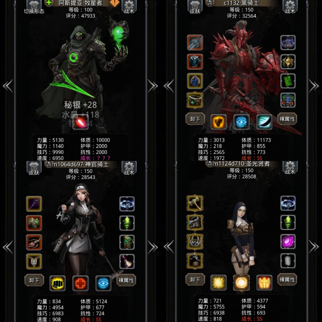黑骑:余晖,飓风铠,辐射戒指,海洋心,混沌环,巨龙,叠体质