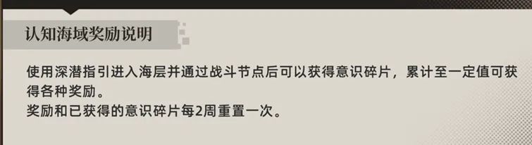 当然这里提到的自由探索和深潜指引的最大区别就是有木有奖励,这两个选项都可以打完一整个流程,但自由探索打完后是无法获得意识碎片解锁每周最高1000分的奖励的,我们想要拿奖励只能进“深潜指引”这个入口。