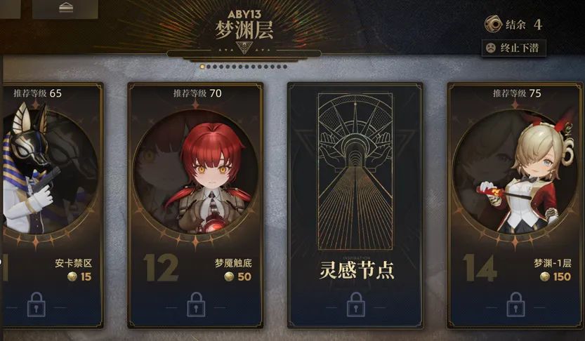 而正式进入玩法后,我们则需要通过一定数量的关卡或节点才能完成此玩法,例如没梦渊层就需要通过14个节点才行。