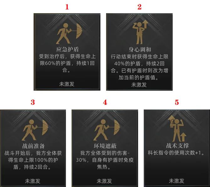 这5个buff大家可以依次按照buff上的数字来选择,例如第一个可选的就是“应急护盾”,而瑛美在回合结束后的自动全场奶就可以触发这个护盾效果,让我方角色的生存能力更有保障,接着后续几个buff也都是进一步提升生存能力的,这个玩法只要能活着,那么便一切皆有可能,而最后一个指令技能使用次数+1的效果,在最后一关面对大量敌人出现时就可以不断使用了,这也能让最后一关的敌人威胁大大降低。
