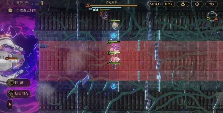 - 接着在战斗过程中,中间的铁路上会出现一个列车长敌人,这个敌人走进boss后会给boss回血,因此在他出现的当前回合内需要快速把他集火掉