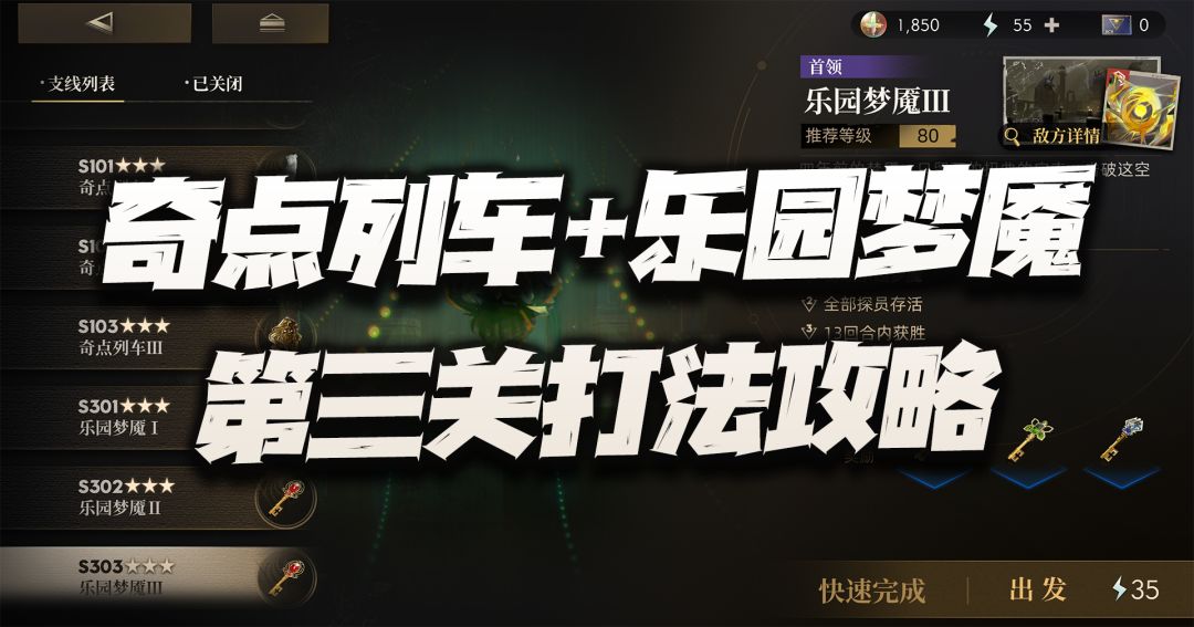 大家好,我是正在膜拜塞壬和维罗妮卡的何二维一。今天的攻略咱们把相关的副本补一补,因为篇幅原因先来奇点列车和乐园梦魇这两个心锚本的第三关3星通关攻略,希望能给大家一些小小的帮助。