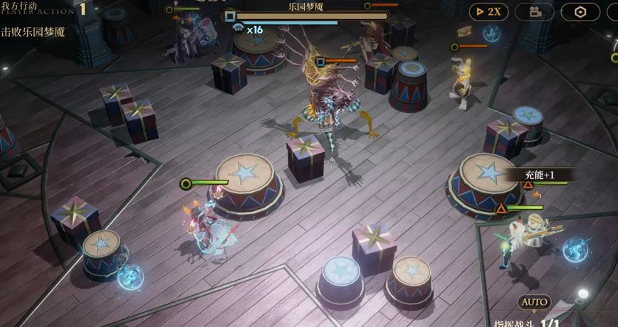 - boss的攻击循环以3个回合为一个循环,其中第1回合它会正常普攻,第二回合它会在普攻后召唤3骰子子,第三回合它则会放大范围的蓄力大招和接一次普攻,随后便会又一次进入以上的轮回