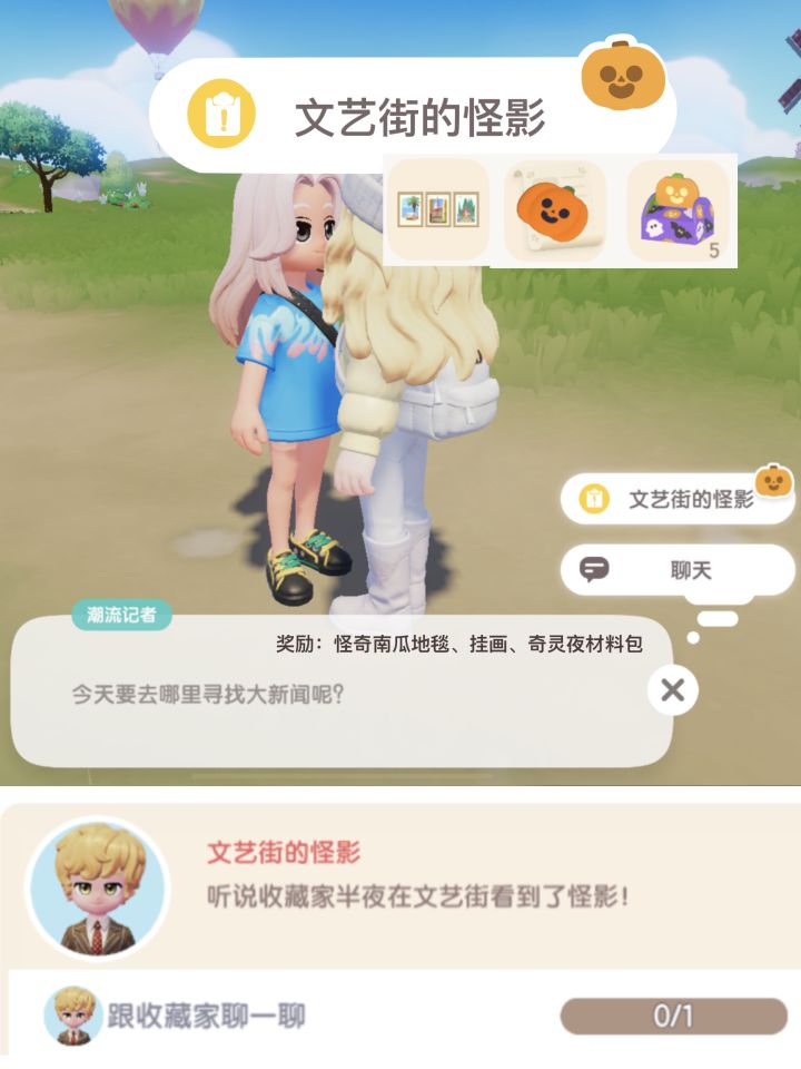 4⃣️去找记者对话告诉真相,获得怪奇南瓜地毯制作书和奇灵夜材料包