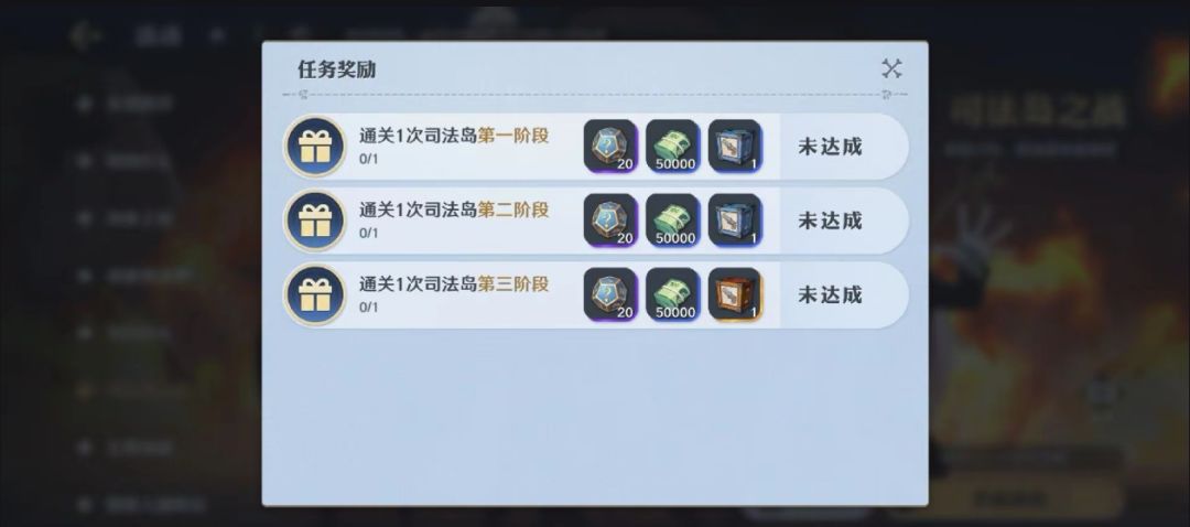 该副本为9人团队副本,3人为1队,分为第一阶段司法岛广场(10分钟)、第二阶段司法塔(15分钟)、第三阶段踌躇之桥(15分钟)三个阶段。该玩法带入战力,所以团队需要有一定的战力基础(至少要有一队战力高一些)。