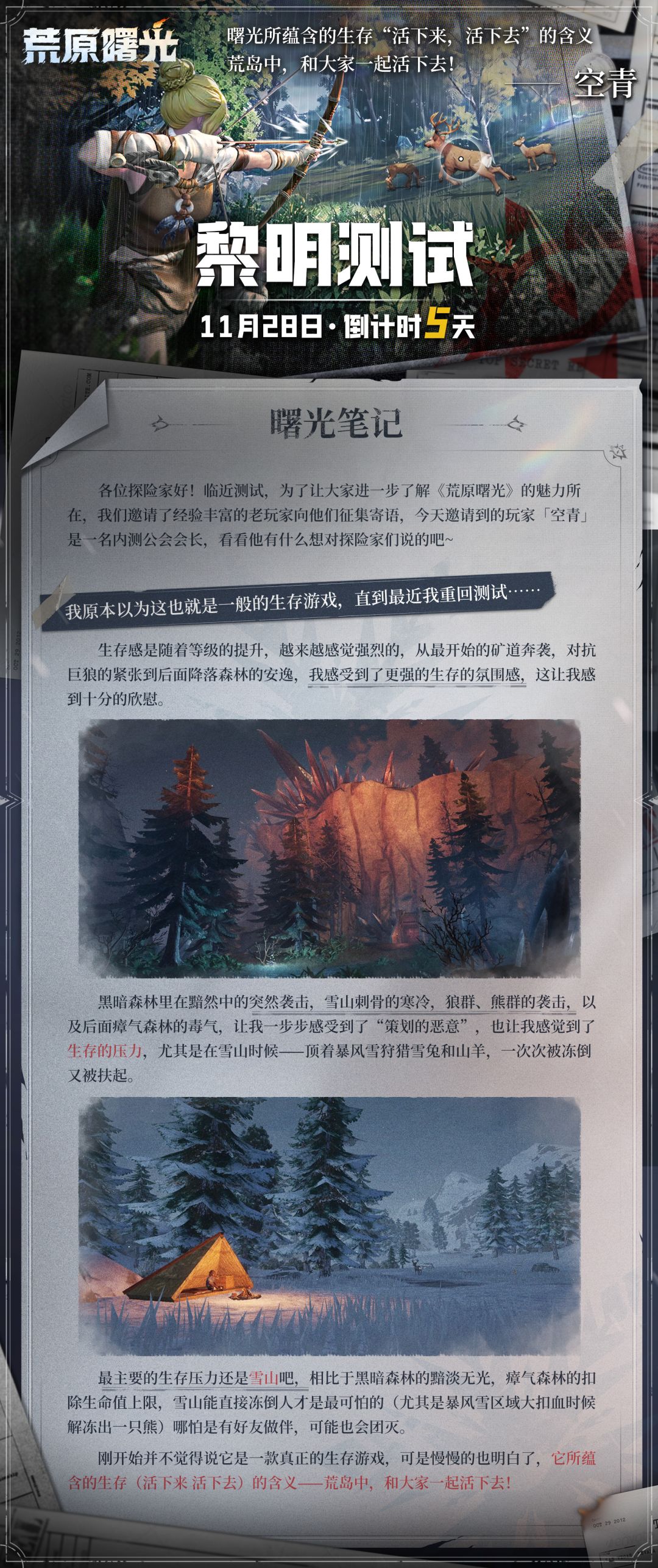 探险家们好,距离黎明测试开启仅剩5天啦!