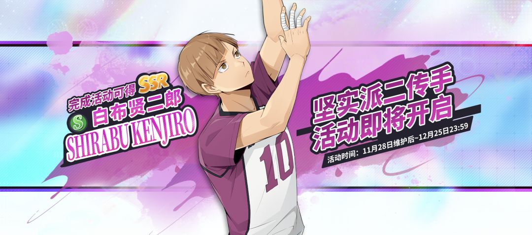 🔸专属活动【坚实派二传手】即将上线,完成活动可获得SSR球员「白布贤二郎(S)」招募机会。