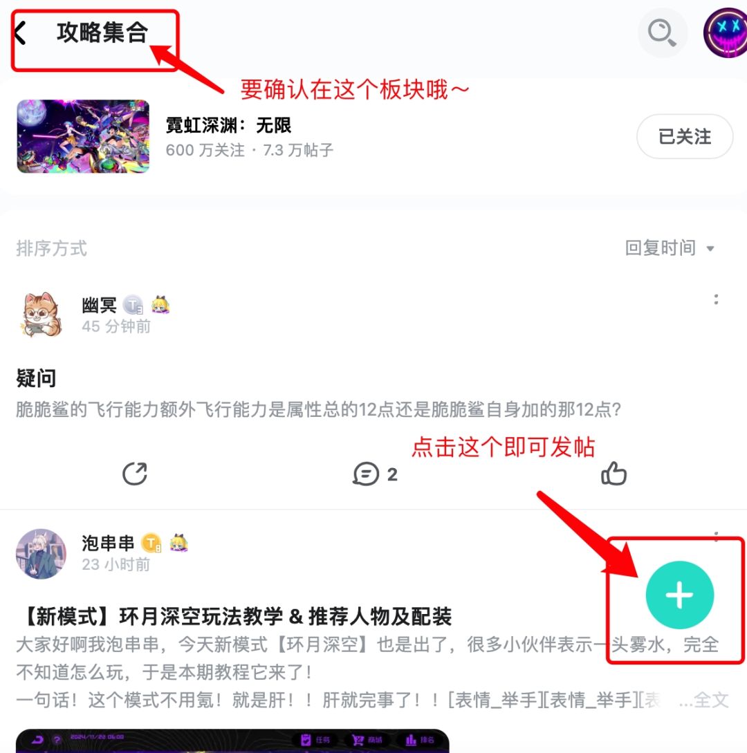 在【霓虹深渊:无限】TapTap 论坛中发布攻略帖,选中【攻略合集】板块并发布