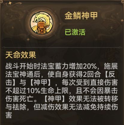 在祖师里,有一些特殊天命也能做到百分比增加法宝蓄力值,如无量、光华、战意、夜暮、芳草萋萋都可以达到百分比增加法宝蓄力的效果。
